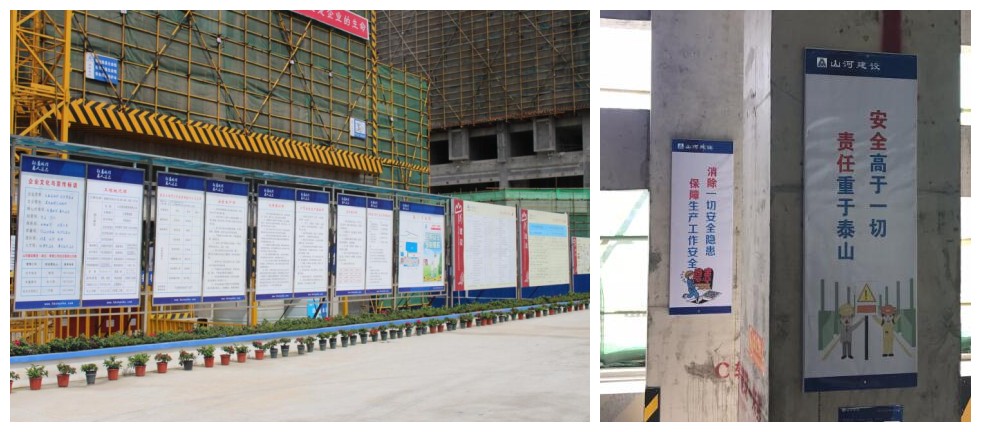 1.施工現(xiàn)場整潔干凈,安全文明規(guī)范隨處可見;