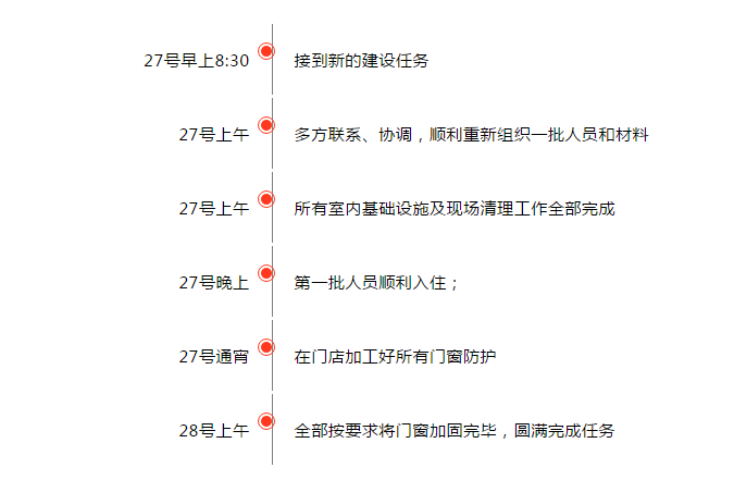 2月27日早上8:30,經(jīng)過一天一夜的奮戰(zhàn),王總帶領(lǐng)的項目團(tuán)隊順利交付施工任務(wù),獲得業(yè)主單位的高度贊揚(yáng),當(dāng)即授予我們第二批改造任務(wù)——方艙內(nèi)部床位布展及門窗加固工作。