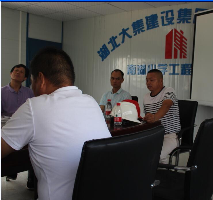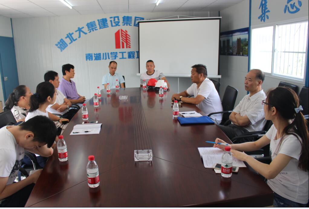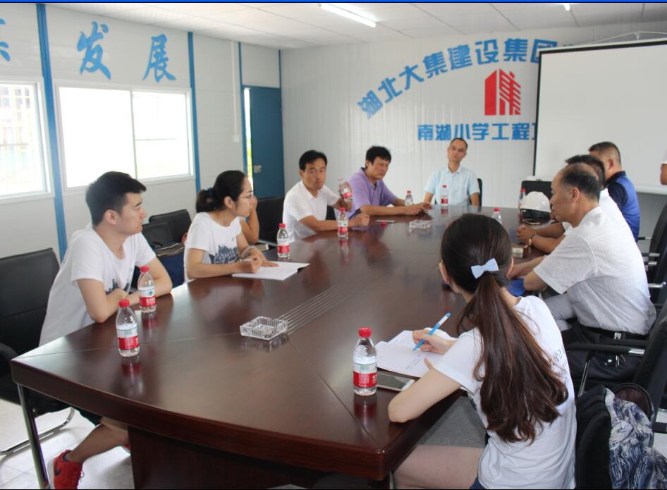 大集街工會主席劉浩首先對調(diào)研組走進大集街表示熱烈歡迎,也對省工會聯(lián)合學(xué)校團體組織的此類公益活動表示大力支持,同時也解釋了選擇南湖小學(xué)項目作為調(diào)研對象的原因,對湖北大集建設(shè)集團一路走來的不斷成長和完善發(fā)展表示肯定,對大集建設(shè)集團高標準的項目建設(shè)和規(guī)范化的用工制度表示嘉獎!