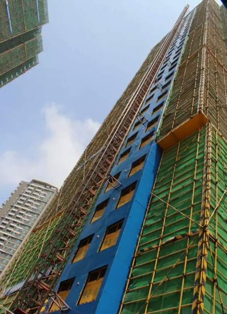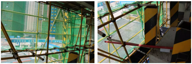腳手架采用雙連墻桿,鋼管橫平豎直,搭設(shè)規(guī)范。