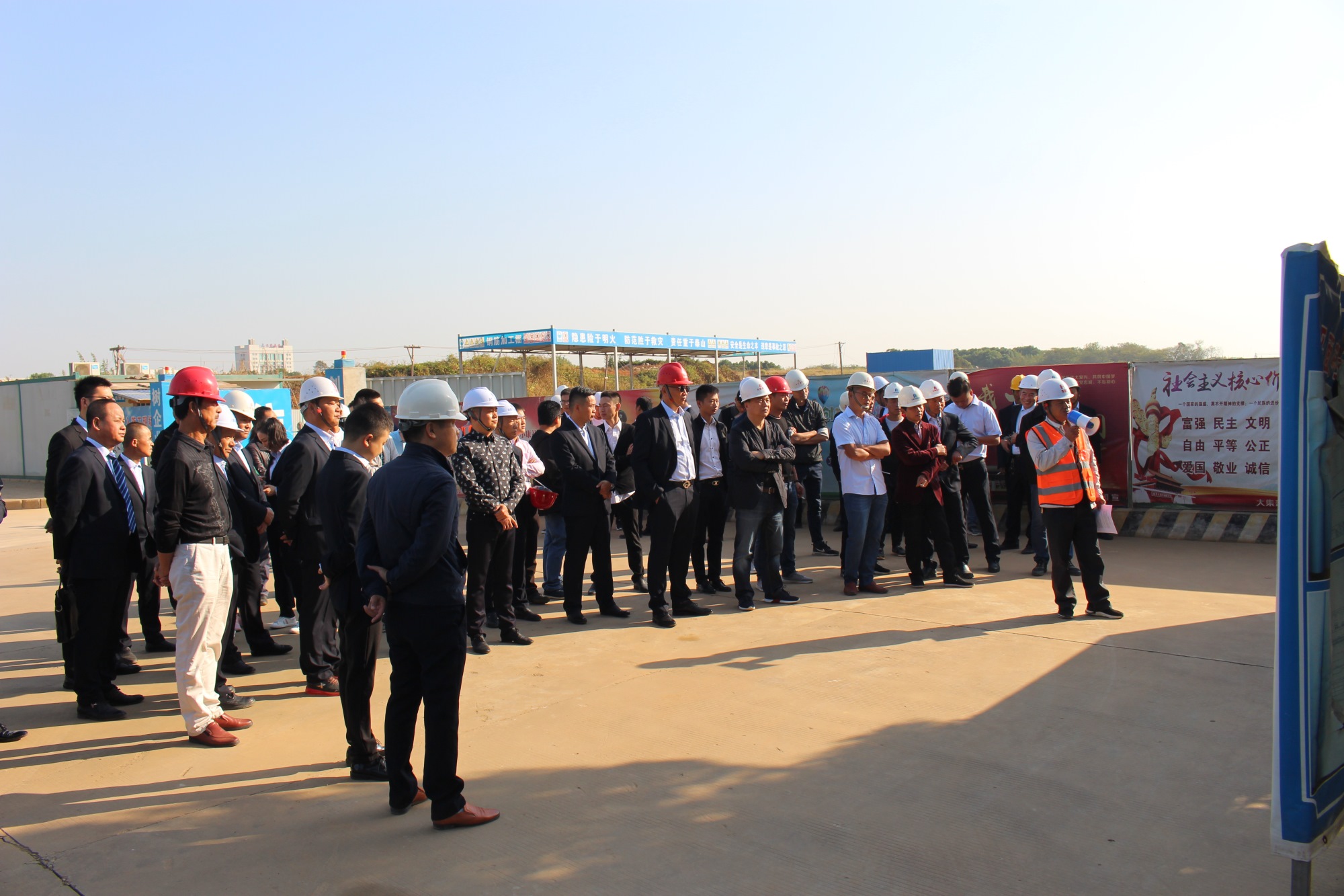 上午,所有參會(huì)人員首先來(lái)到大沌南路項(xiàng)目施工現(xiàn)場(chǎng)進(jìn)行參觀。在大沌南路項(xiàng)目負(fù)責(zé)人何廣州的帶領(lǐng)下,大家對(duì)大沌南路項(xiàng)目的工程概況、安全文明施工、新工藝、工程質(zhì)量與進(jìn)度管控等方面的情況進(jìn)行了詳細(xì)地觀摩與學(xué)習(xí)。