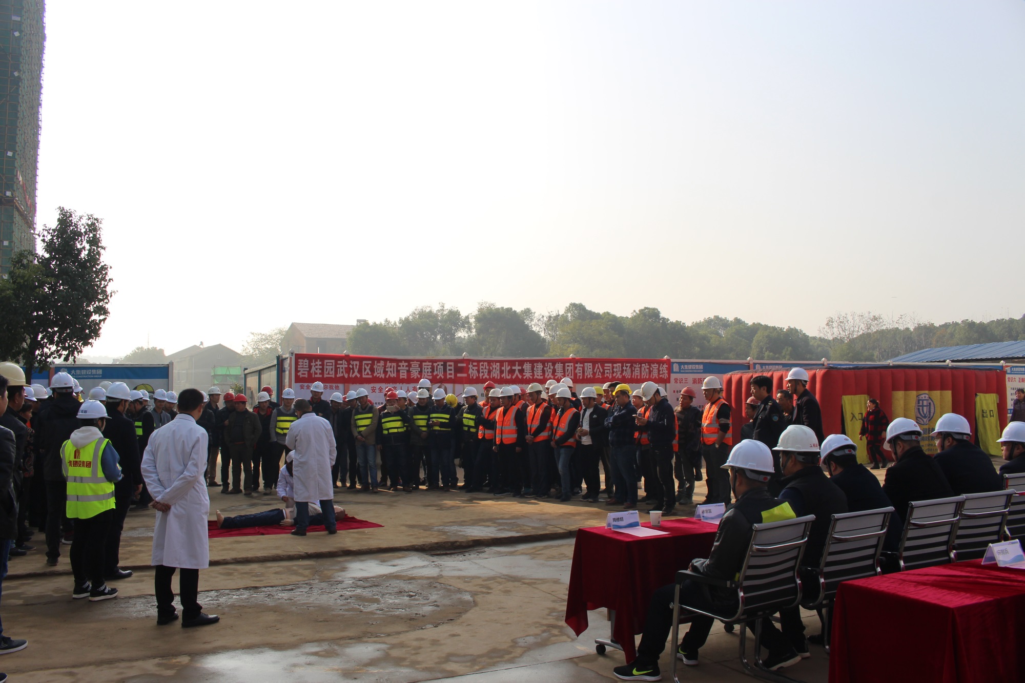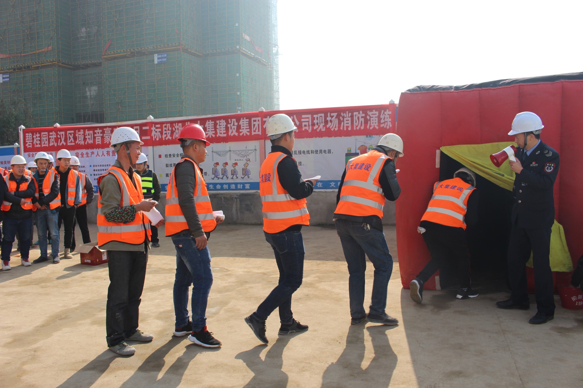 演習項目結(jié)束后,碧桂園武漢區(qū)域漢口片區(qū)執(zhí)行總裁屈宇宏為本次活動做總結(jié)。屈總感謝了區(qū)建管站以及大集街道對于碧桂園知音豪庭項目的指導和關(guān)心,他指出碧桂園武漢區(qū)域?qū)詻Q貫徹和落實區(qū)建管站和大集街道對于安全文明施工的要求。