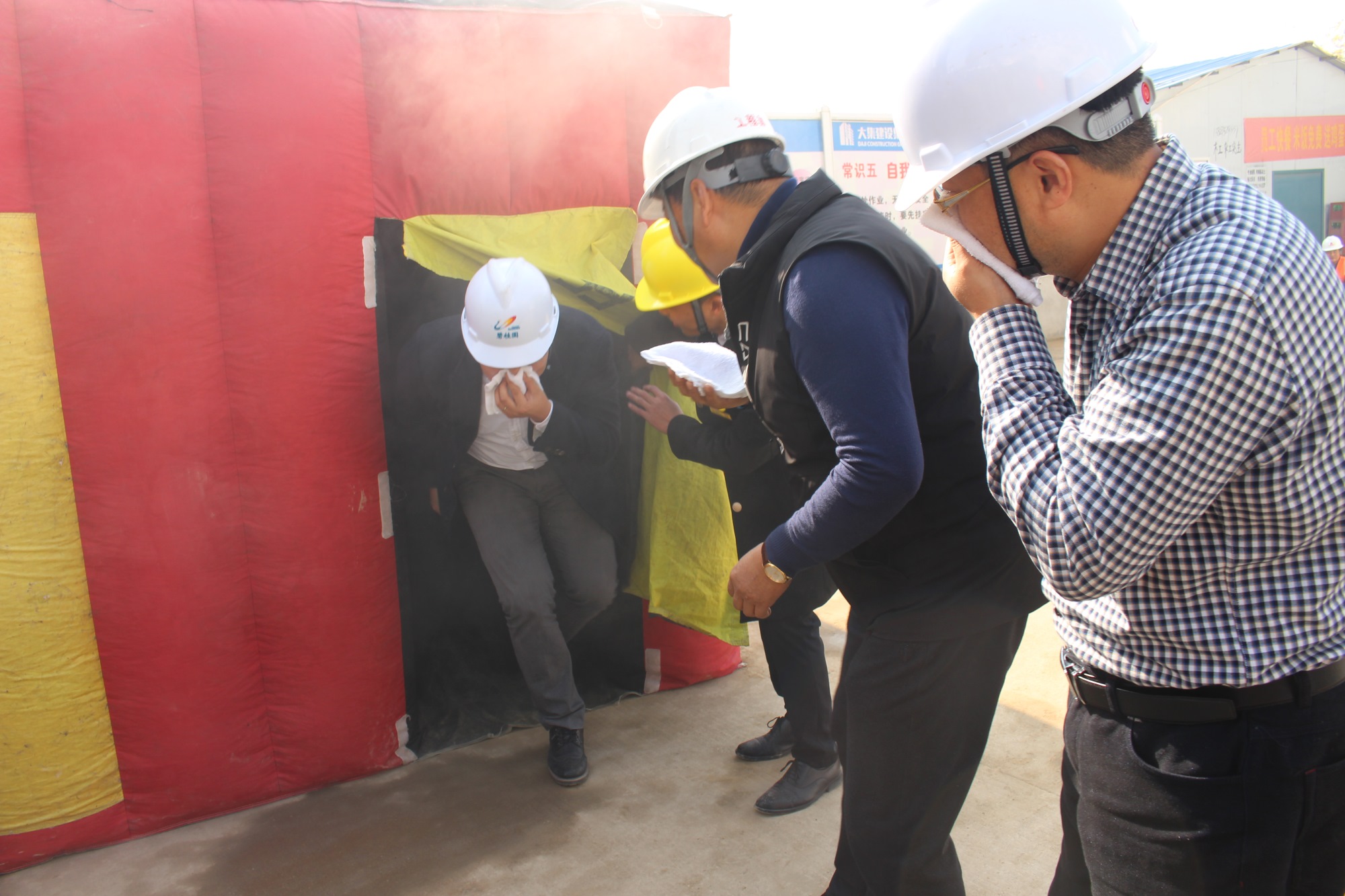 隨后,湖北楚安消防宣教中心王好主任帶領(lǐng)大家共同體驗了應急帳篷,應急帳篷模擬了火災煙霧及火災的陰暗環(huán)境,現(xiàn)場人員在王主任的指導下有秩序地進入帳篷進行體驗。