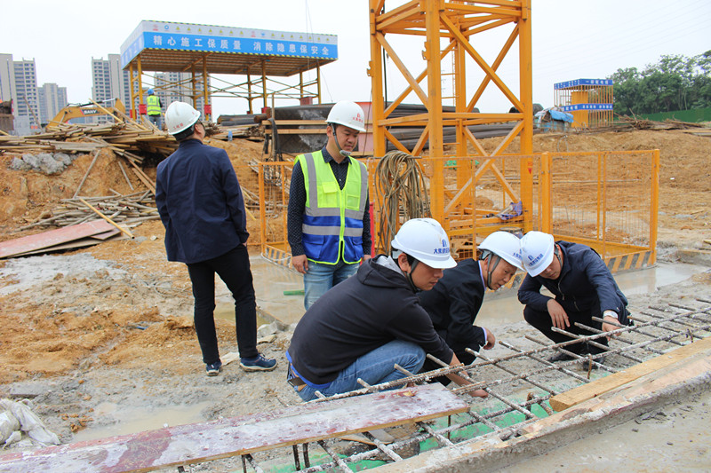 5月6日,集團(tuán)公司副總經(jīng)理徐家富帶領(lǐng)工程部部長(zhǎng)余齊、招投標(biāo)部部長(zhǎng)胡鵬、物資供應(yīng)部部長(zhǎng)俞倩、財(cái)務(wù)部部長(zhǎng)鄧雪芬、行政部兼法務(wù)部部長(zhǎng)李漢毛等前往碧桂園光谷云境項(xiàng)目二標(biāo)段,對(duì)碧桂園光谷云境項(xiàng)目的質(zhì)量管理、安全管理和文明施工等工作進(jìn)行檢查指導(dǎo)。