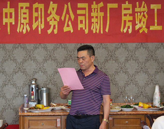 6月26日,武漢中原印務(wù)有限責(zé)任公司隆重舉行新廠房竣工答謝會,集團(tuán)副總經(jīng)理徐家富、項(xiàng)目經(jīng)理田建新、招投標(biāo)部部長胡鵬、財(cái)務(wù)部部長鄧雪芬等受邀出席。